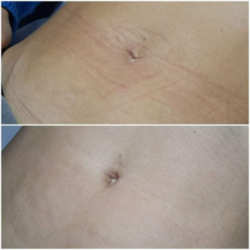 • redukcja rozstępów na udach, pośladkach, brzuchu oraz piersiach